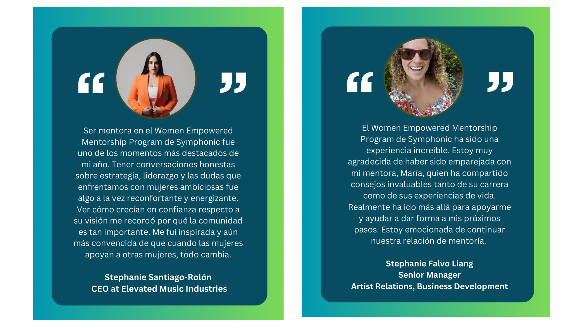 “Cinco años después de haber iniciado este programa de mentoría, estoy extremadamente orgullosa de todas las conexiones significativas que hemos facilitado en la industria”, dice Janette Berrios, VP of Corporate Marketing en Symphonic. “Los comentarios que hemos recibido cada año nos demuestran la importancia de seguir expandiendo el programa y abogando por el empoderamiento femenino. ¡Por otro año exitoso!”